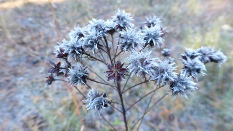 The seed heads have fluffy pappuses, the feathery bit at the end of the seed, that give the plant an appearance of shards of ice.